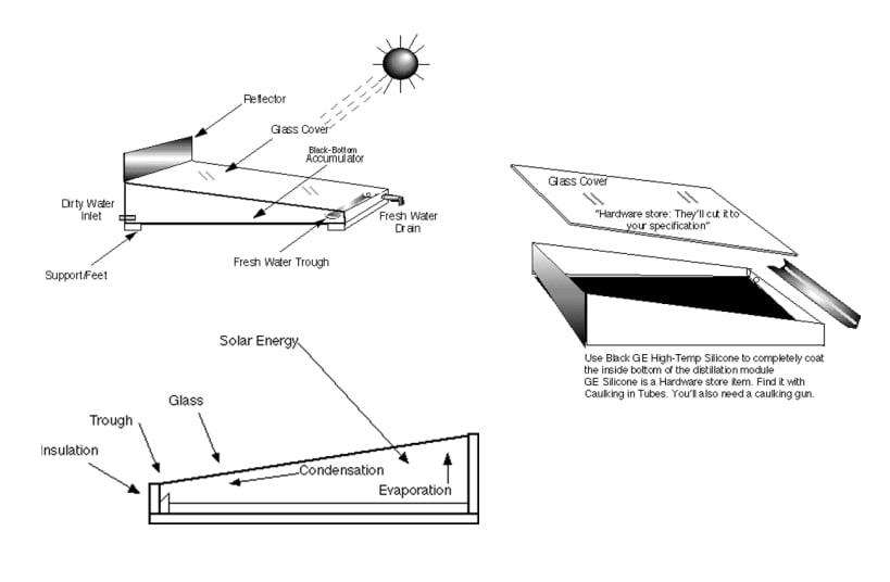 Water is essential for life to exist. Here we will present ideas for capturing, and purifying water for human consumption under various conditions.