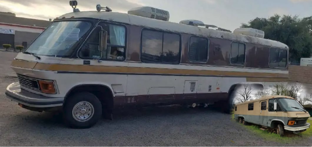We started with an old REVCON RV body we bought, saving the old motorhome from the scrap yard. It looked a lot like a combination of these two pictured, except filled years worth of junk and buried in the mud with the engine sitting on the ground. The rats had a field day chewing on the wiring.
