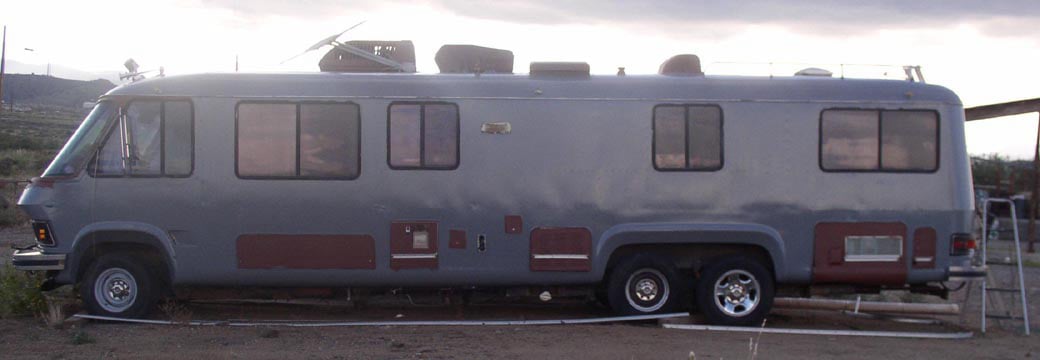 We purchased an old 33 foot RV with the intention making it part of one of our stories and converting it into a portable office and solar powered low voltage demonstration model. We contend that 110/220 volts is not only expensive but wasteful as well, and that almost all the comforts and technology we take for granted today could be run on 12 to 24 volts. Aside from being mobile office space; this RV will become a demonstration model and educational tool to challenge conventional thought for housing the homeless and sustainable living.