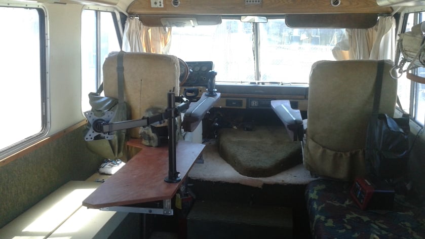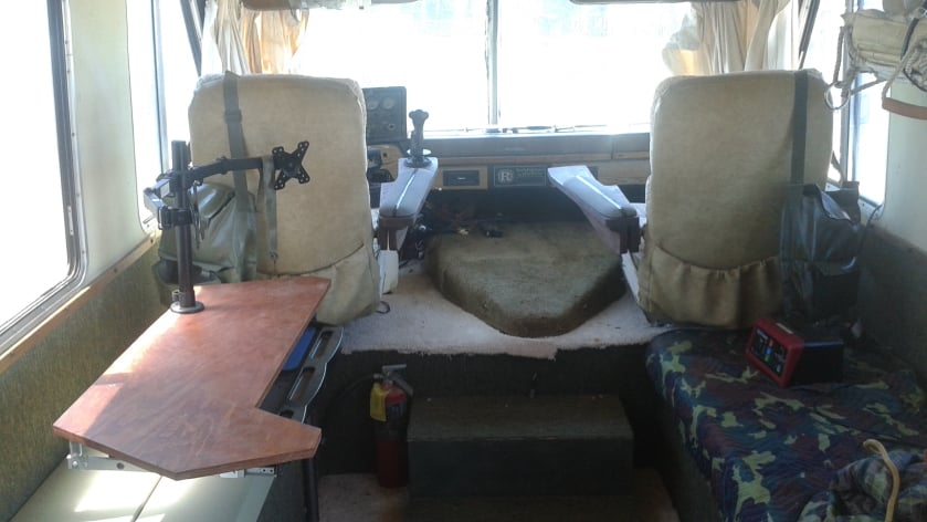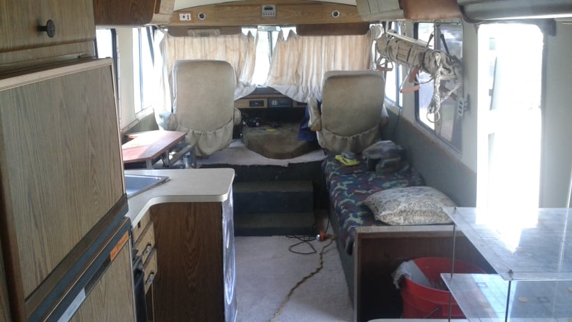 We purchased an old 33 foot RV with the intention making it part of one of our stories and converting it into a portable office and solar powered low voltage demonstration model. We contend that 110/220 volts is not only expensive but wasteful as well, and that almost all the comforts and technology we take for granted today could be run on 12 to 24 volts. Aside from being mobile office space; this RV will become a demonstration model and educational tool to challenge conventional thought for housing the homeless and sustainable living.